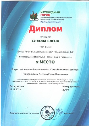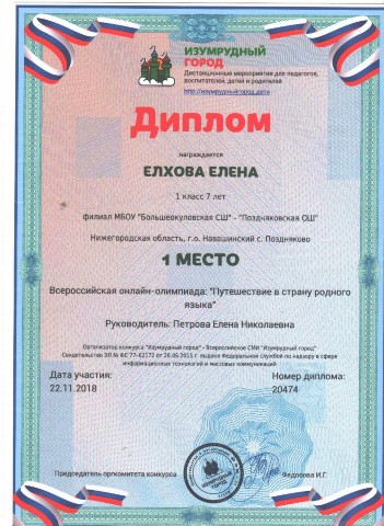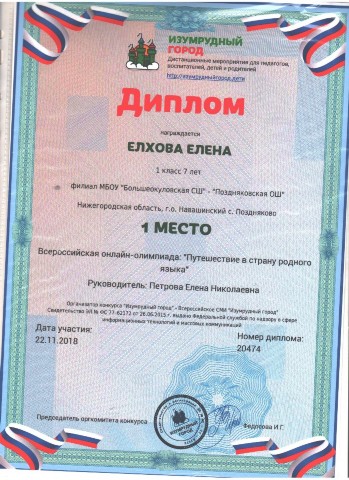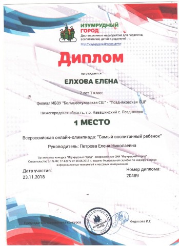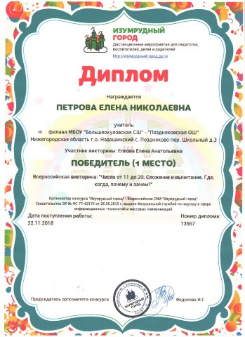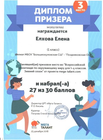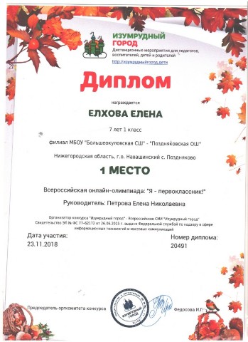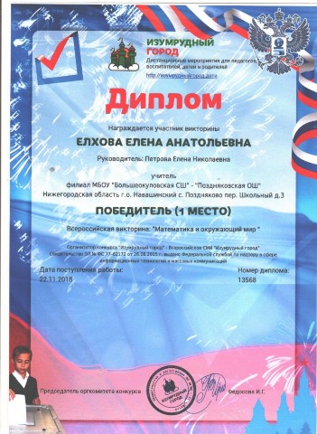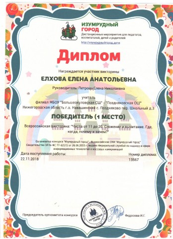 Персональная страница учителя начальных классов Петровой Е. Н.